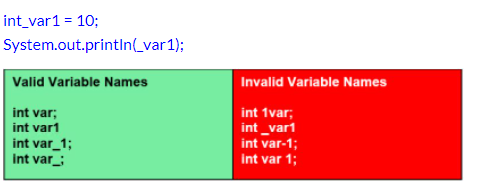 - A variable name must not be any reserved word or keyword e.g. char, float etc.